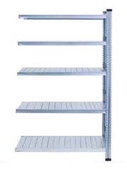 Adaptability and flexibility are the selling points of this fully galvanised steel bay shelving system, with optional add-on extender. Easily assembled with no screws or nuts, making it hugely versatile and adaptable to both domestic and industrial needs. The metal shelving is extremely functional - it’s perfect for sorting, storing and picking small goods and supplies.