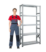 Adaptability and flexibility are the selling points of this fully galvanised steel bay shelving system, with optional add-on extender. Easily assembled with no screws or nuts, making it hugely versatile and adaptable to both domestic and industrial needs. The metal shelving is extremely functional - it’s perfect for sorting, storing and picking small goods and supplies.